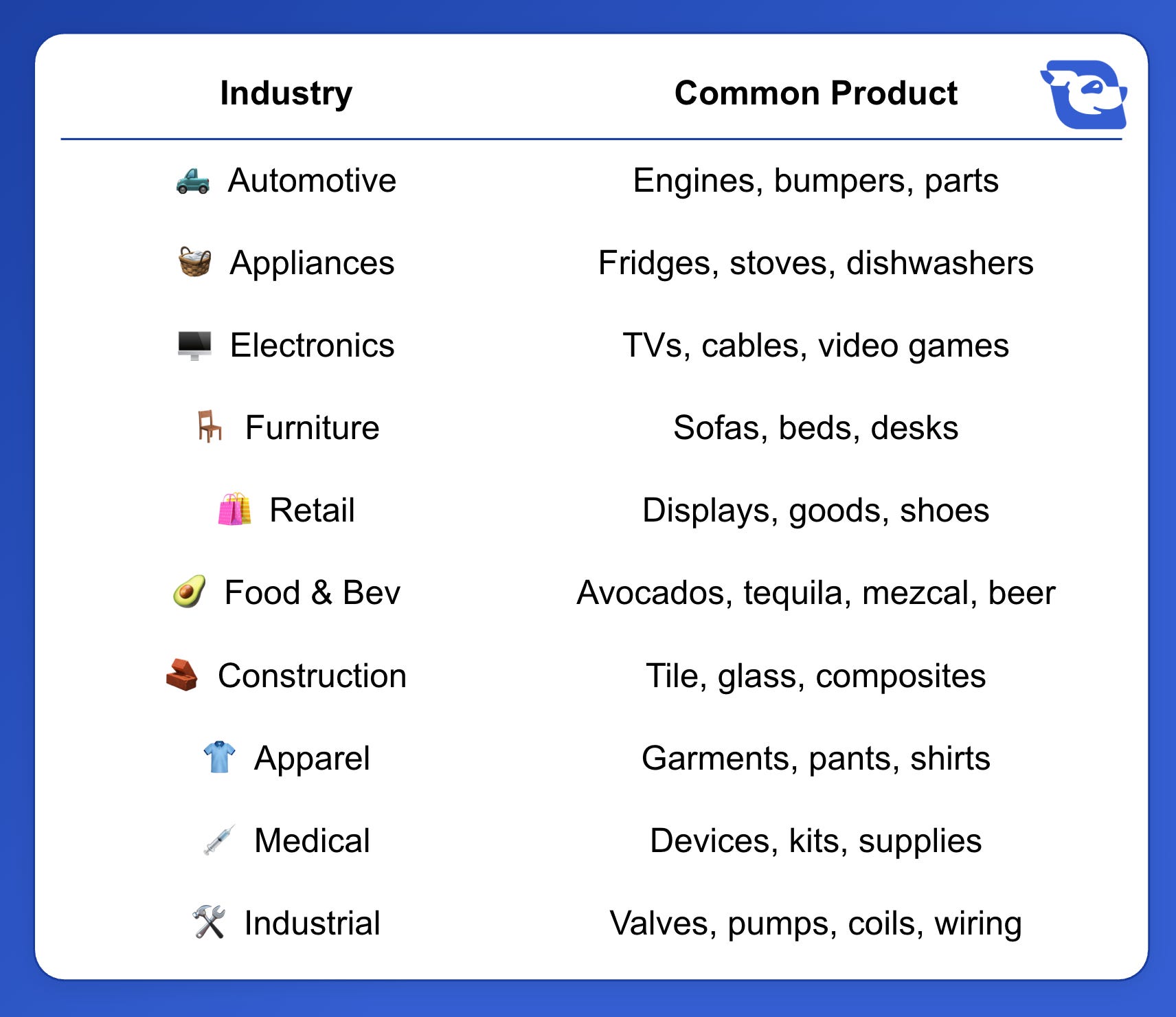 Mexico freight doesn’t show up randomly. It clusters around certain industries — the ones building, assembling, or finishing products on both sides of the border.